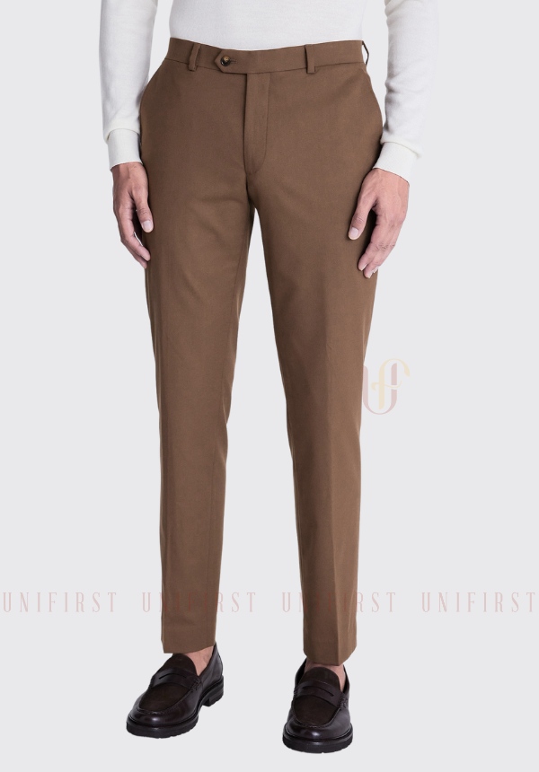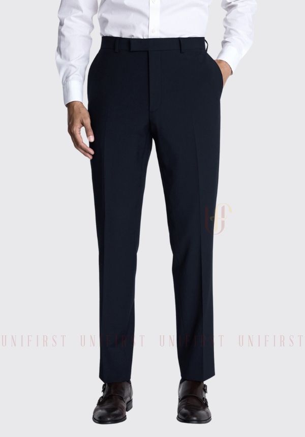 Đi kèm sơ mi hoặc vest, quần tây nam công sở tại Unifirst được thiết kế với kiểu dáng ống đứng, form cổ điển nhưng không lỗi thời. Phần cạp quần vừa vặn, có thể may theo kiểu lưng liền hoặc lưng chun giấu để phù hợp với yêu cầu di chuyển nhiều hoặc ngồi lâu.