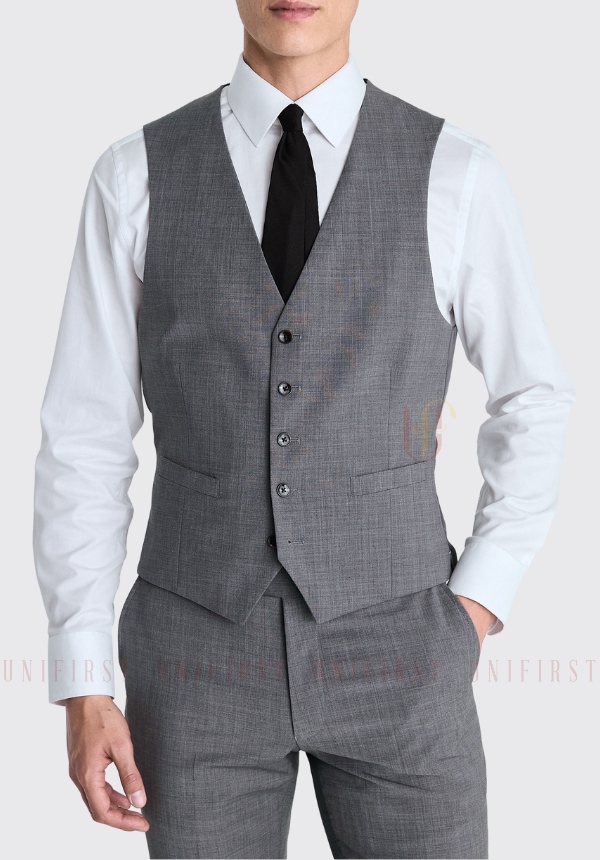 Vest nam của Unifirst thường được thiết kế theo form slim-fit vừa phải, giúp giữ phom dáng gọn gàng nhưng vẫn thoải mái khi vận động. Chi tiết cổ danton và cấu trúc vai nhẹ giúp áo lên form đẹp, đồng thời tạo cảm giác vững chãi, lịch thiệp cho người mặc.