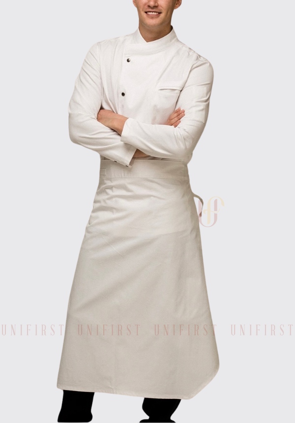 Tạp dề là lớp bảo hộ quan trọng giúp đầu bếp tránh khỏi dầu mỡ, nước nóng hoặc vết bẩn trong suốt quá trình nấu ăn. Thiết kế tạp dề của Unifirst ưu tiên dáng may sát thân để không gây cản trở khi làm việc. Tuỳ theo khu vực bếp và công việc cụ thể, đầu bếp có thể sử dụng loại tạp dề dài che đầu gối hoặc loại ngắn đến hông để thuận tiện hơn trong di chuyển. Ngoài ra, túi trước được bố trí hợp lý nhằm đựng khăn lau, kẹp gắp hoặc các dụng cụ thường dùng mà không ảnh hưởng đến tốc độ thao tác.